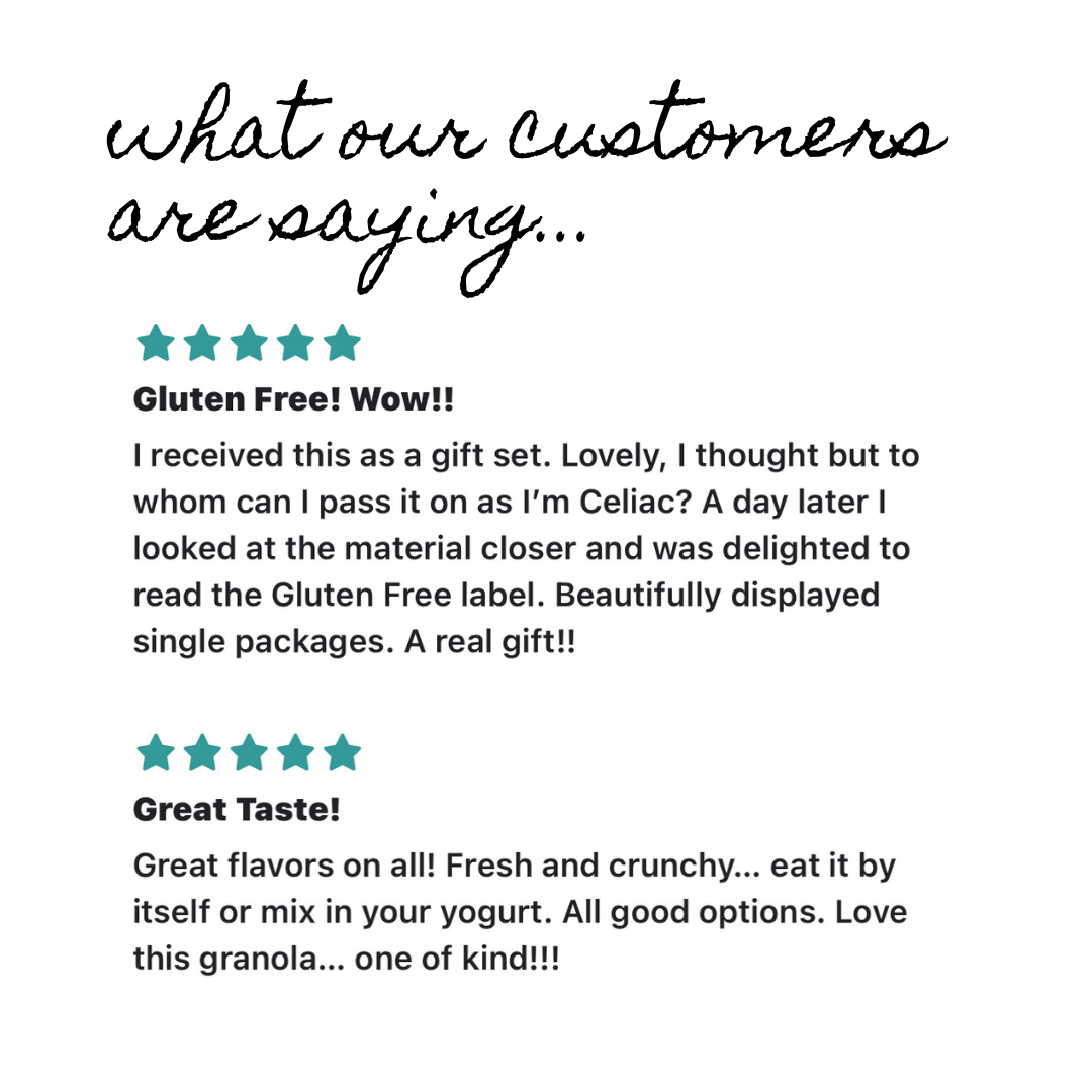 All products produced in our kitchen are 100% gluten free and we take pride in sourcing the finest ingredients for our granola blends.