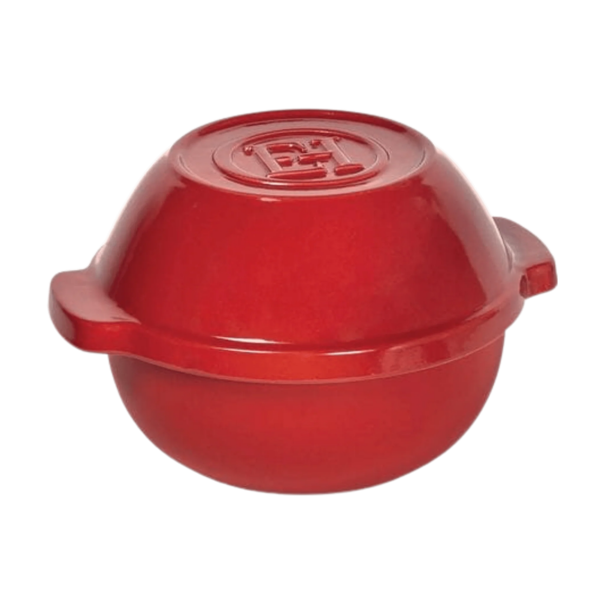 Our no-knead bread pot is a wonderful addition to any kitchen. Made of the highest quality French stoneware, the rounded shape is ideal for no-knead loaves and other breads. Unlike most pans, you can preheat it empty in the oven! Spherical shape is designed to heat evenly on all sides. Excellent for cooking vegetables and bread! All Emile Henry products are made in France and offer a ten year guarantee.